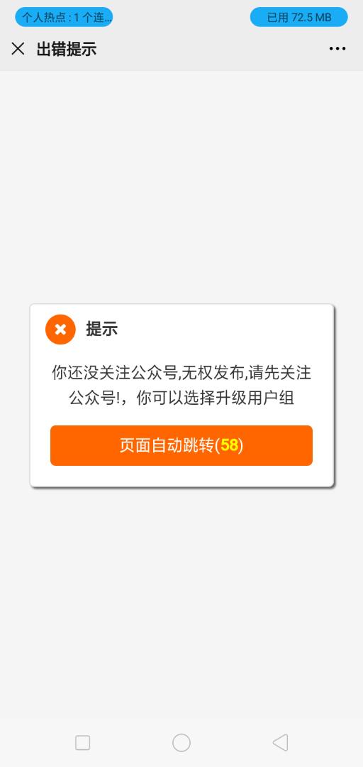 提示要关注公众号才能发贴,跳出叫你升级用户组