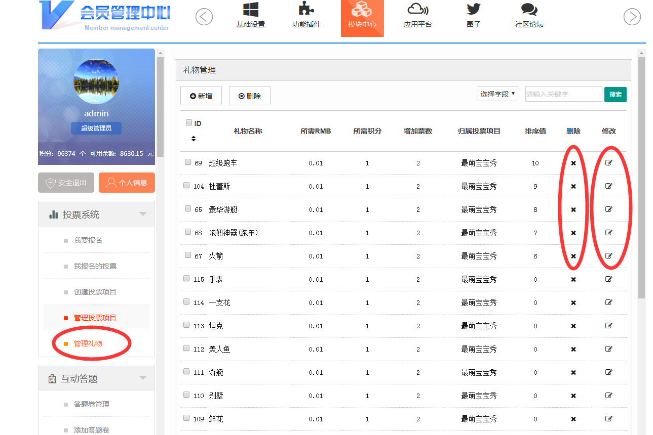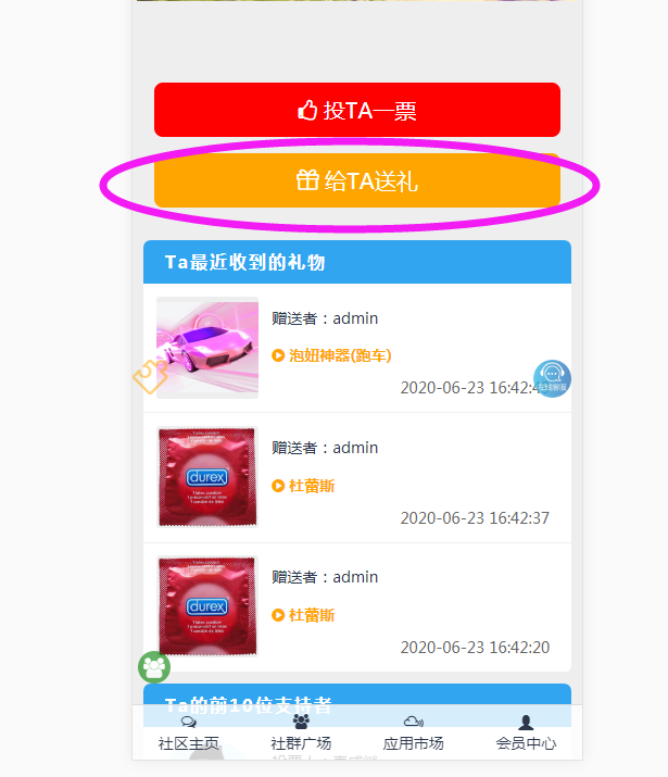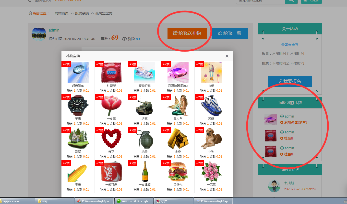 老大这个送礼物加票数的最好不让用户自己设置,弄成由平台在总后台设置。