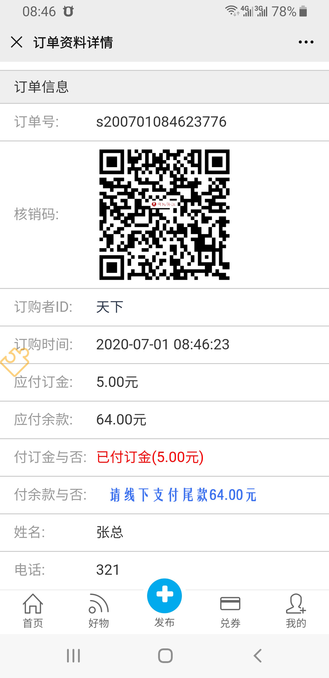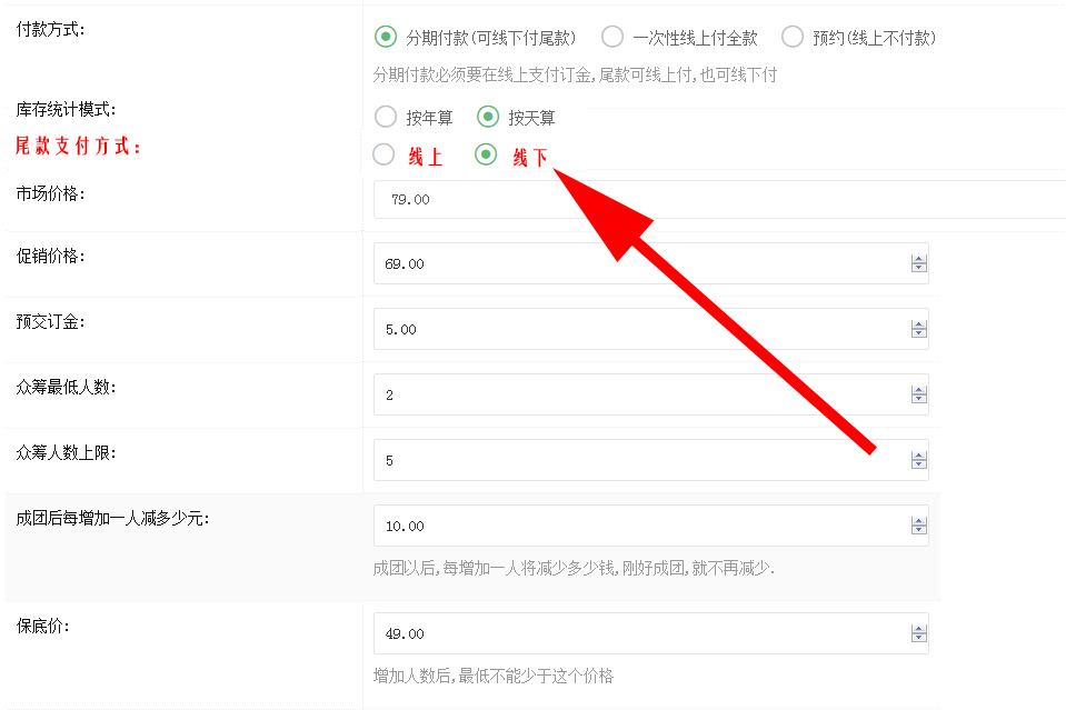 预定拼团,先交定金模式,使用细节提议:后台设置支付余款方式,线上还是线下,要选择一个,这样子收钱不会乱!
