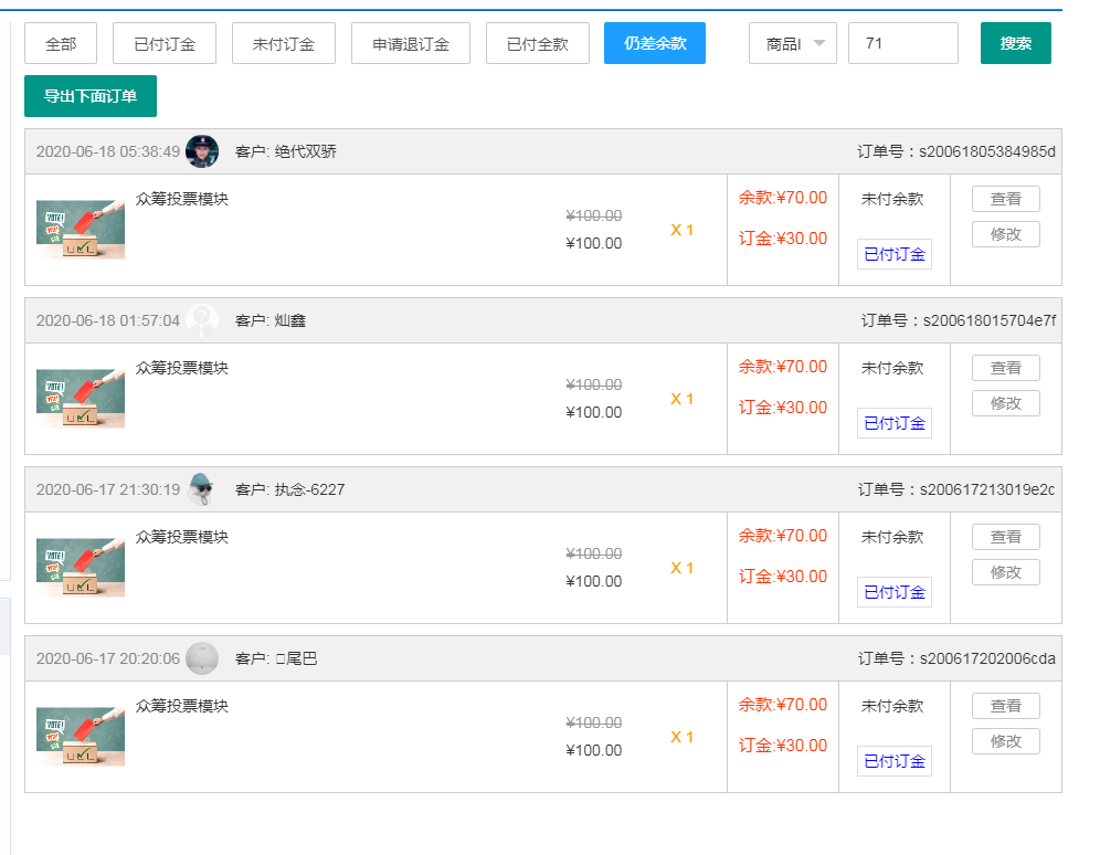 大家可以在官方体验一下。为了让大家在本机更好的体验投票系统,因此这两天内,将上架投票模块。但发现还有以下四位付了订金的用户,还没付余款。在此提醒一下,不及时付余款的话,先售出的应用,将没有股份分成收益。