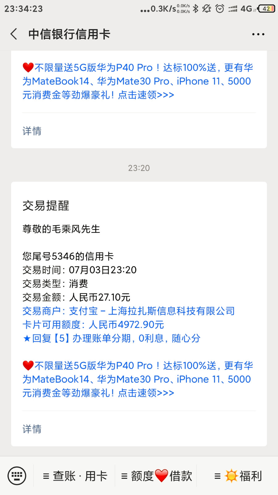 做为一个非常重要的和用户沟通的机会,能否借鉴银行信用卡之类信息通知一样,在需要通知的信息下方再追加一些随机或可自定义的广告信息呢?比如把论坛贴子随机一起发送,或者把需要推广的一些商品、文章、贴子等指定链接推送。会去留意查看信息的,都是比较有忠诚度的用户,那向他们推送信息,更有利于提升一些推广信息的被接受度。象下图这样的银行推广信息,就值得借鉴。