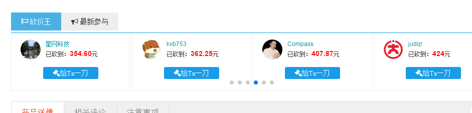 建议鼠标放在上面的时候,图片就不要轮播了,否则不方便砍价