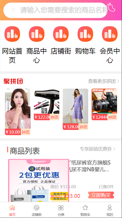 现在只做了,首页,分类页,商品列表页,详情页,登录相关功能没做,不太懂官方的相关接口。