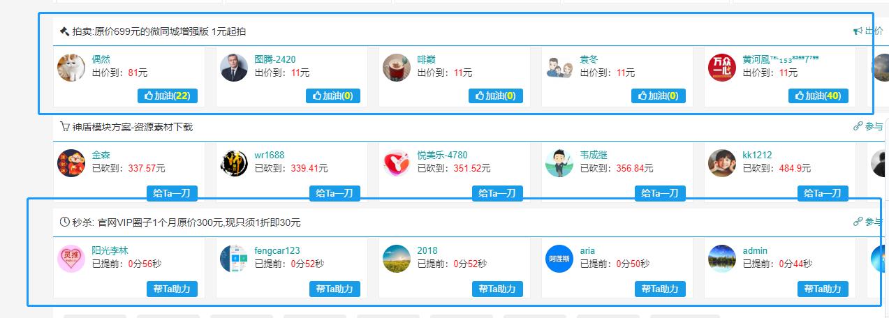 拼团商城已经增加了砍价、拍卖,大家可以进后台升级了。
