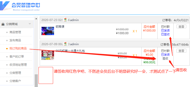@ admin 分销商城会员中心验证签收分销