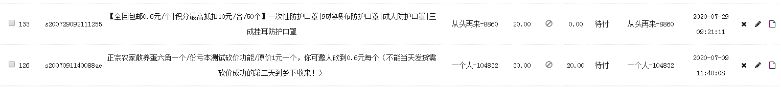 @admin 关于促销商城订单和退款问题,第一个就是用户下单没交定金,也没交尾款,订单一直在,不消失,这个应该设置一个如果多长时间不交定金自动失效,同样到期不交尾款,订单失效!第二个就是他交了定金,定金数量就是最后砍价的的底价,他砍价成功后订单上线数的还是现实未交尾款,我觉得这个需要优化下;第三,就是砍价未成功的退款问题,在会员中心找不到退款按钮;第三就是交了定金,会员中心也显示的是未交定金:
