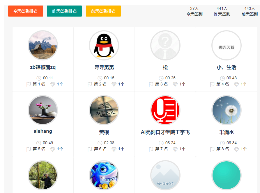 签到人数少的时候开启了让人感觉网站没多少人气。