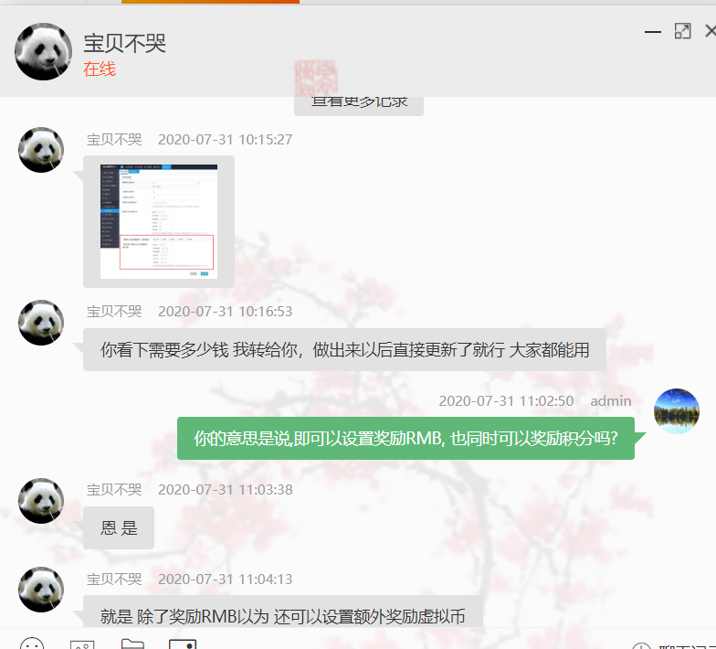 并且 在“宝贝不哭”的付费订制下,增加了可以额外设置积分奖励,当然你也可以只设置积分奖励,而不设置RMB奖励。