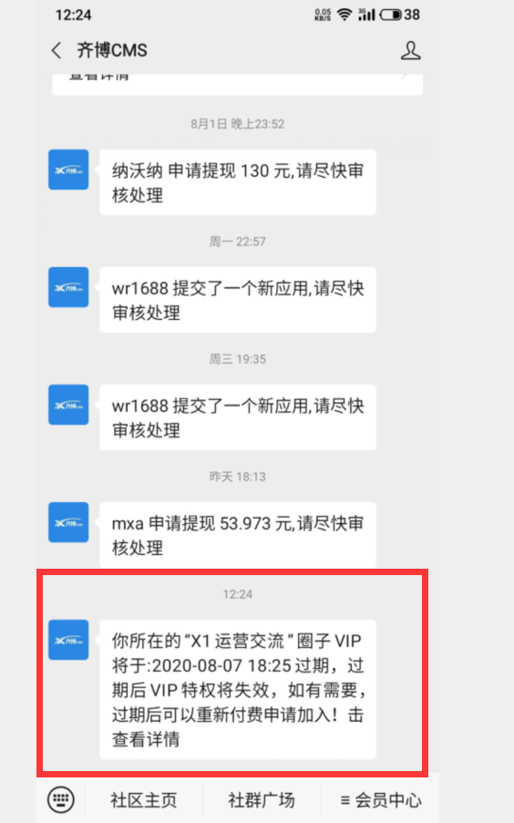 如下图所示.圈子VIP即将到期的最后一天,增加续费提醒功能. 这样就解决有的用户.不知道自己的VIP是否已过期的问题.