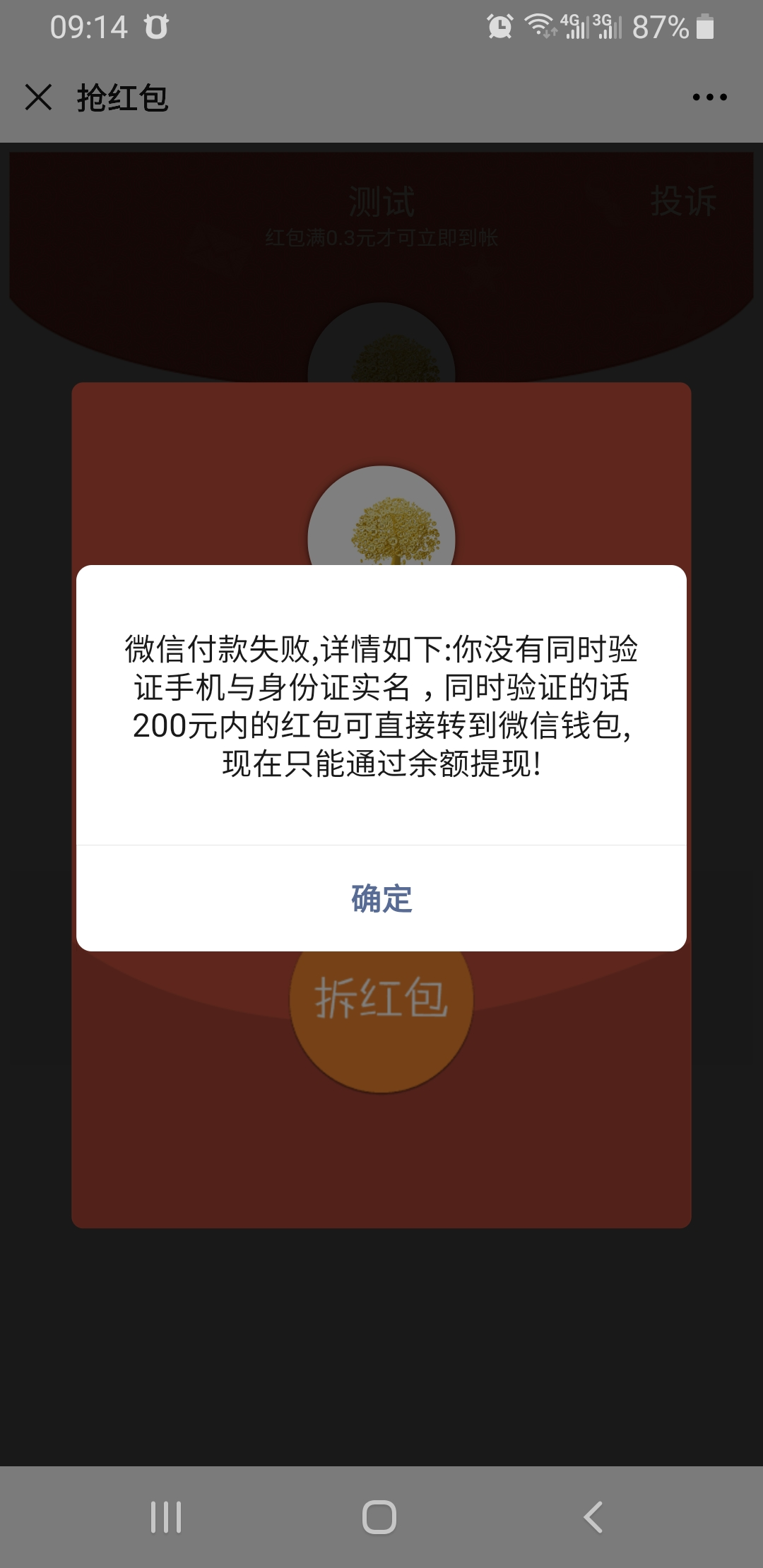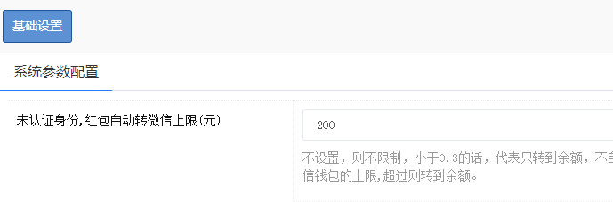 红包插件bug一枚:后台设置了 未认证身份,红包自动转微信上限(元)200元,可是前台领取红包时候,仍然提示微信付款失败,因为没同时验证手机和身份证实名。。。。