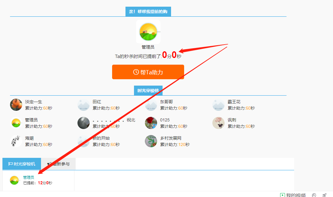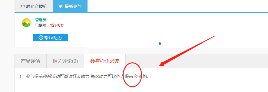 @admin 促销商城助力秒杀PC端的几个问题反馈,一:如上图,他的秒杀时间已提前多少的数据无法显示;另外,这个能助力我个人你觉得叫秒杀不大合适,最好能改为抢购,模型改为助力抢购;