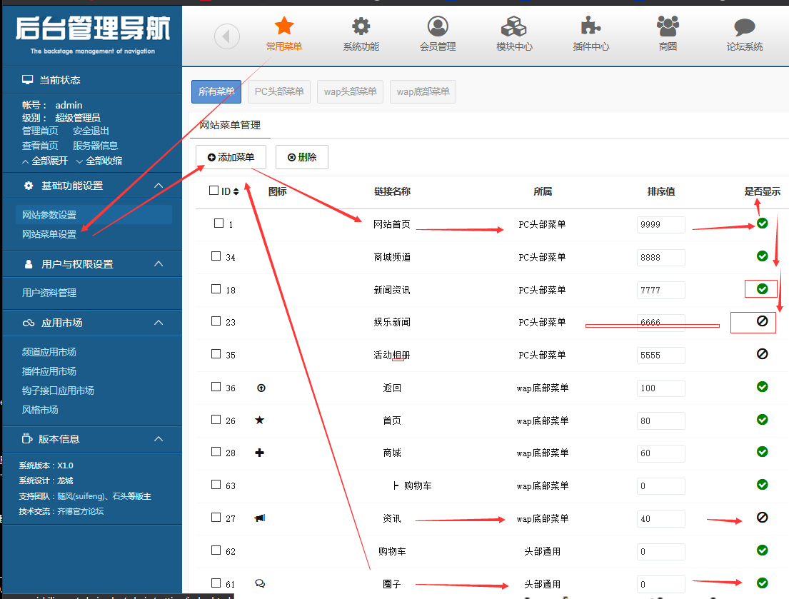 手机版本首页导航栏目菜单自己动手把链接加上吧,网站后台,菜单 管理,