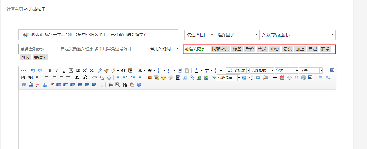 @阿赖耶识 标签云在后台和会员中心怎么加上自动获取可选关键字?