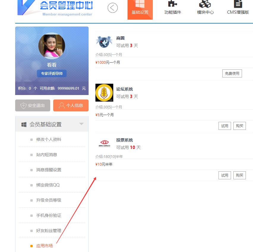 可以定义任务模块或插件上架给用户试用或购买。也可以设置VIP用户组免费使用。