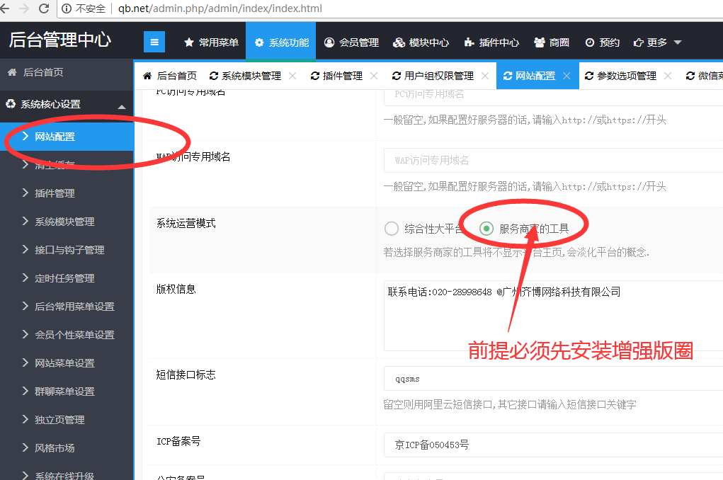 可以选择运营模式,定位于服务商家工具的话,将不显示网站主页。不过你得安装增强版圈子才行。否则也不好服务于商家。