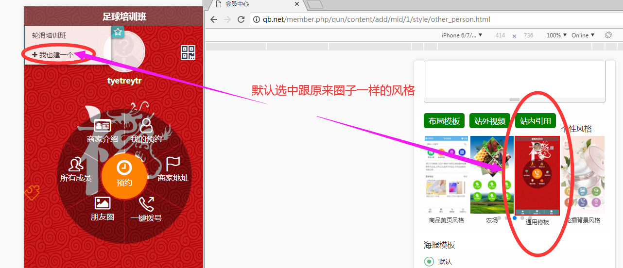 其二,在WAP端,我要创建一个圈子的时候,默认选中跟原来的圈子一样的风格.