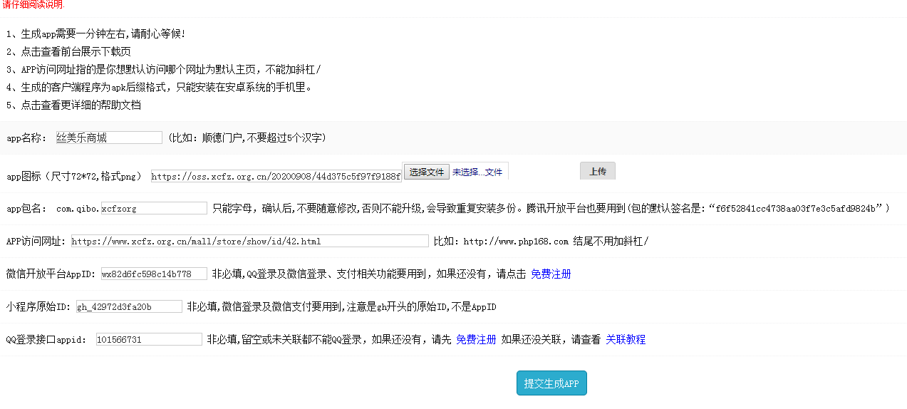 第五步:把图标上传到套壳APP插件,把链接地址换成你要APP地址或者商铺地址,提交生成APP。