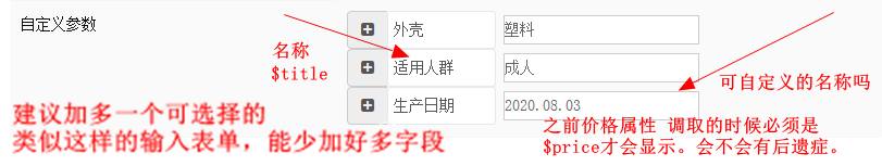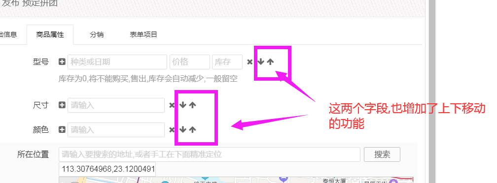 另外,数组字段与商品属性信息字段,也增加了上下移动的功能,避免大家修改的时候,要调整排序而不方便