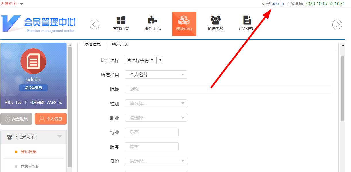 复制一个模块管理员登陆前台发布正常会员登录前台发布就找不到表