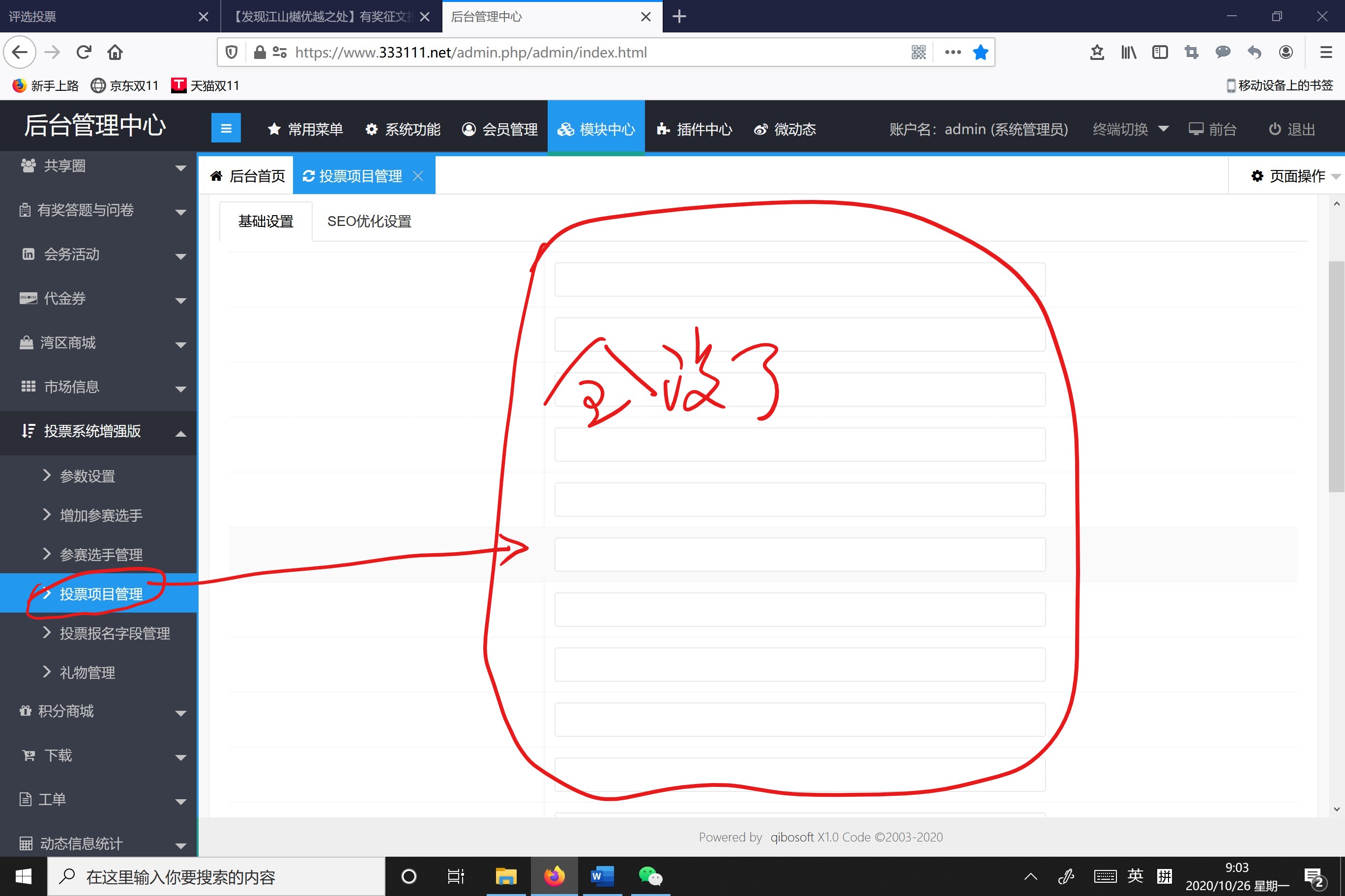 投票应用不能管理了,重新载入框架、刷新、清除缓存都没用。