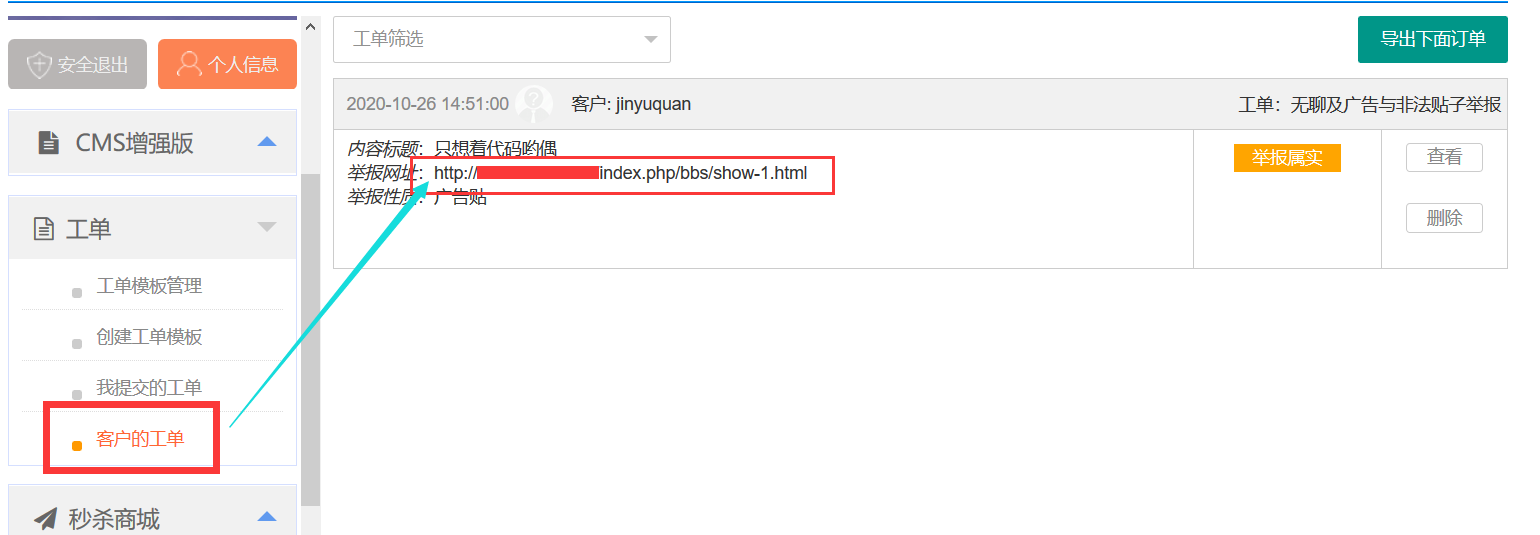 二、会员中心-工单-客户得工单 这里也是一样 没有链接 还需要审核得时候自己复制链接去看了再来审核 。