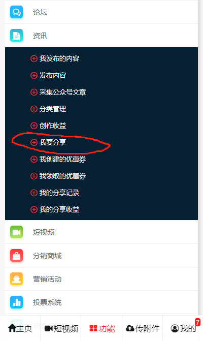 在会员中心的CMS里点击“我要分享”,跳出错误窗口。