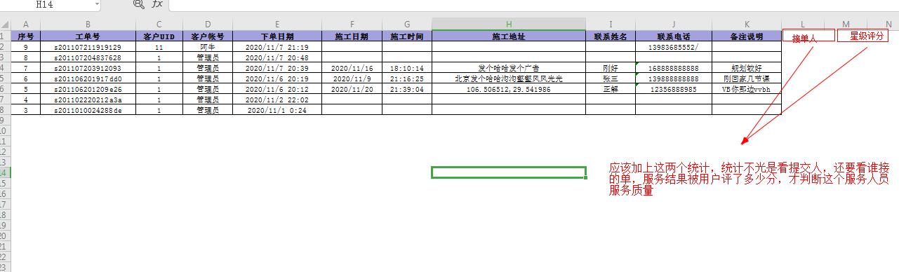 2、数据统计问题,有了提交人的数据,还要看服务人员的数据和服务人员的星级评分(必定前端都有,统计里也应该有)