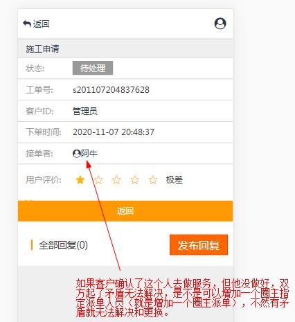 3、如果下单人和抢单人服务中出现矛盾,怎么解决?就需要一个圈主可以指定派人的功能去解决这件事,不然问题就无法解决。