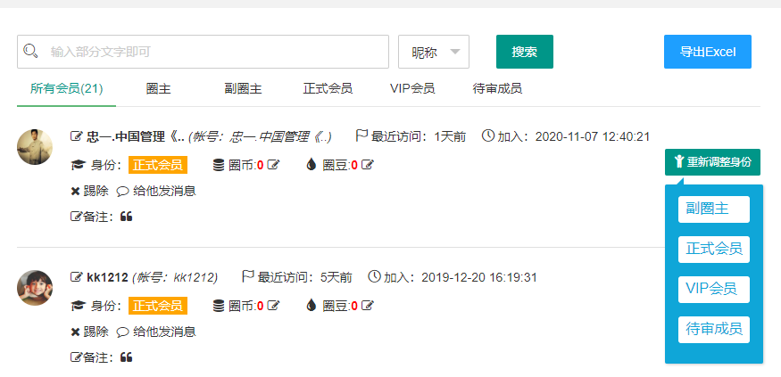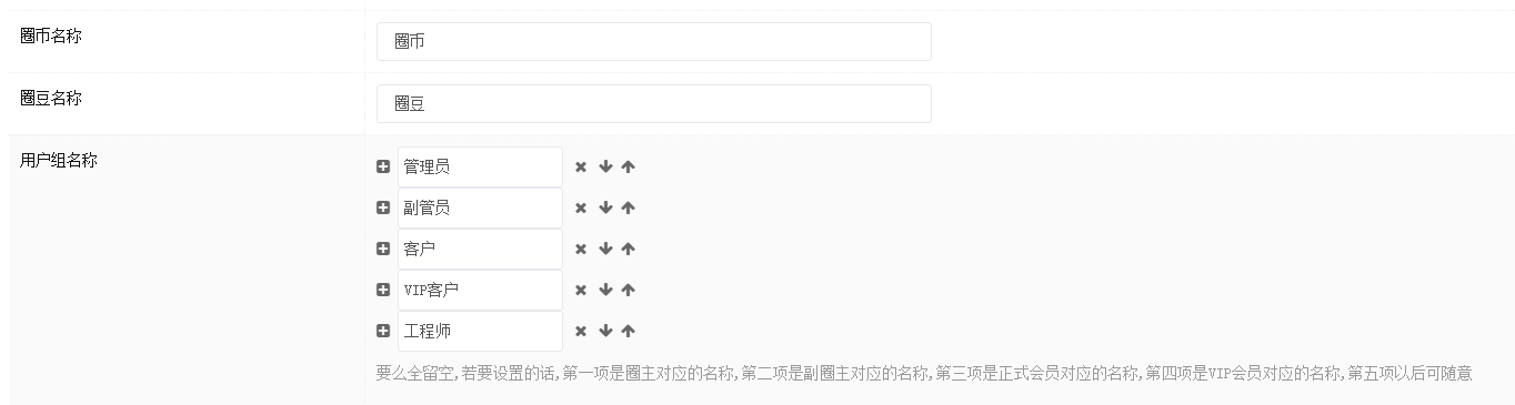 圈子里的会员组目前只能站长统一定义,圈主没有圈子会员组定义权限,只有分配用户组的权限。这样会造成,一个系统里有多个不同行业的圈主时,不同行业间会员组的命名会很不协调。