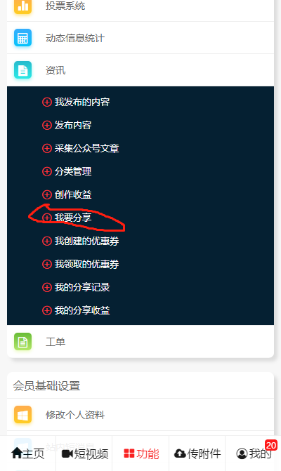 你的地址可能有误.我要分享,指的是设置了分销的内容