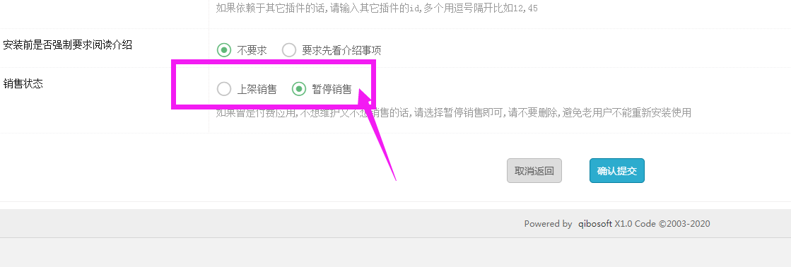 如果你觉得产品已过时,没有市场价值了,或者是没精力再深入继续开发的话,又不想新用户购买后遇到问题找你麻烦的话,你可以选择暂停销售。