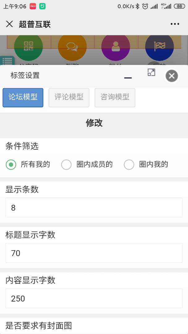1、圈子论坛贴子按主页键会返回总论坛,而不是返回圈子论坛,这很影响圈主使用。当然,这问题解决后,如果能为论坛增加圈主自定义分类功能,就更好了。