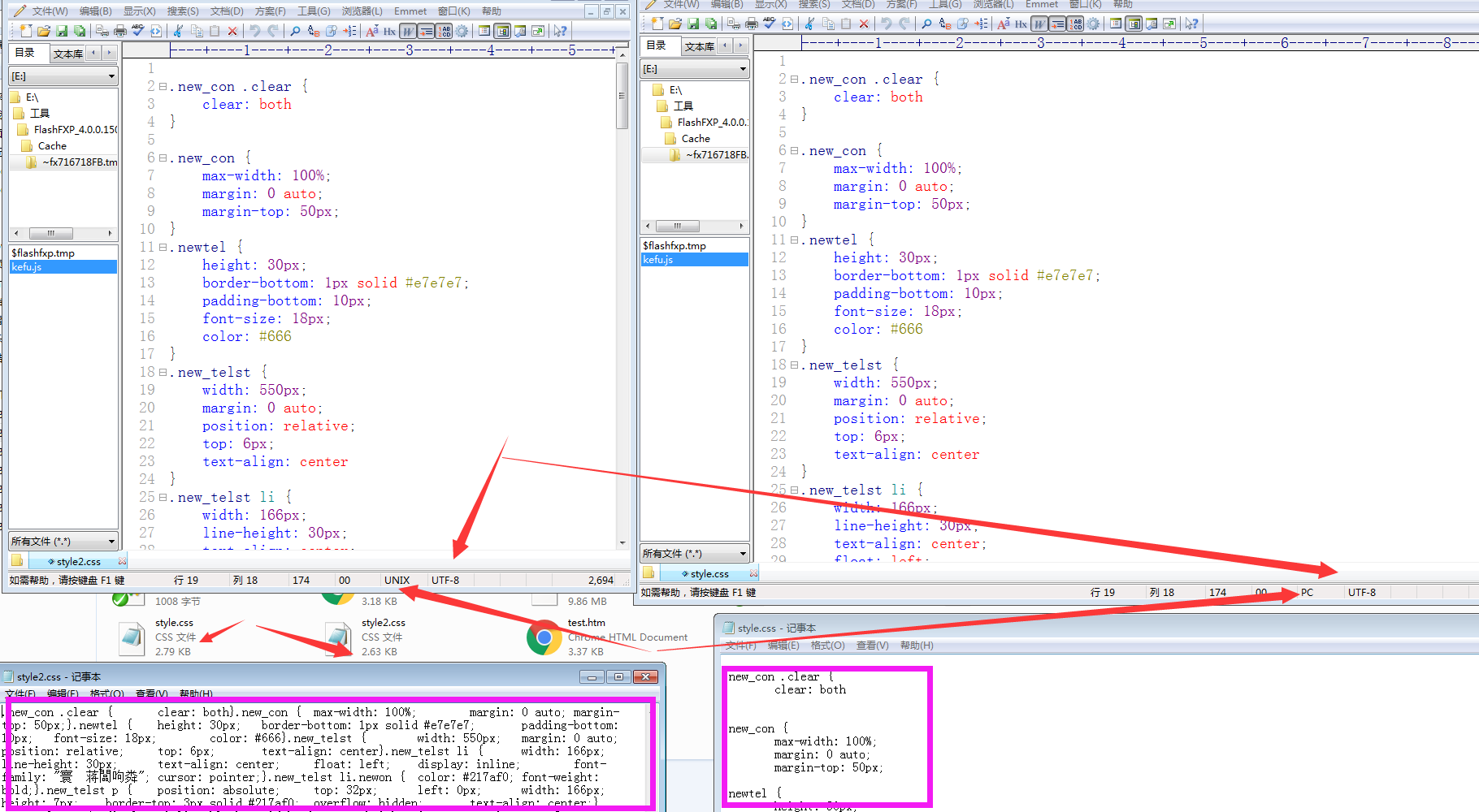 另一种情况就是换行的格式不一样。也同样会造成文件有细微的区别。如下图所示,这种情况大家平时可能很少注意到。