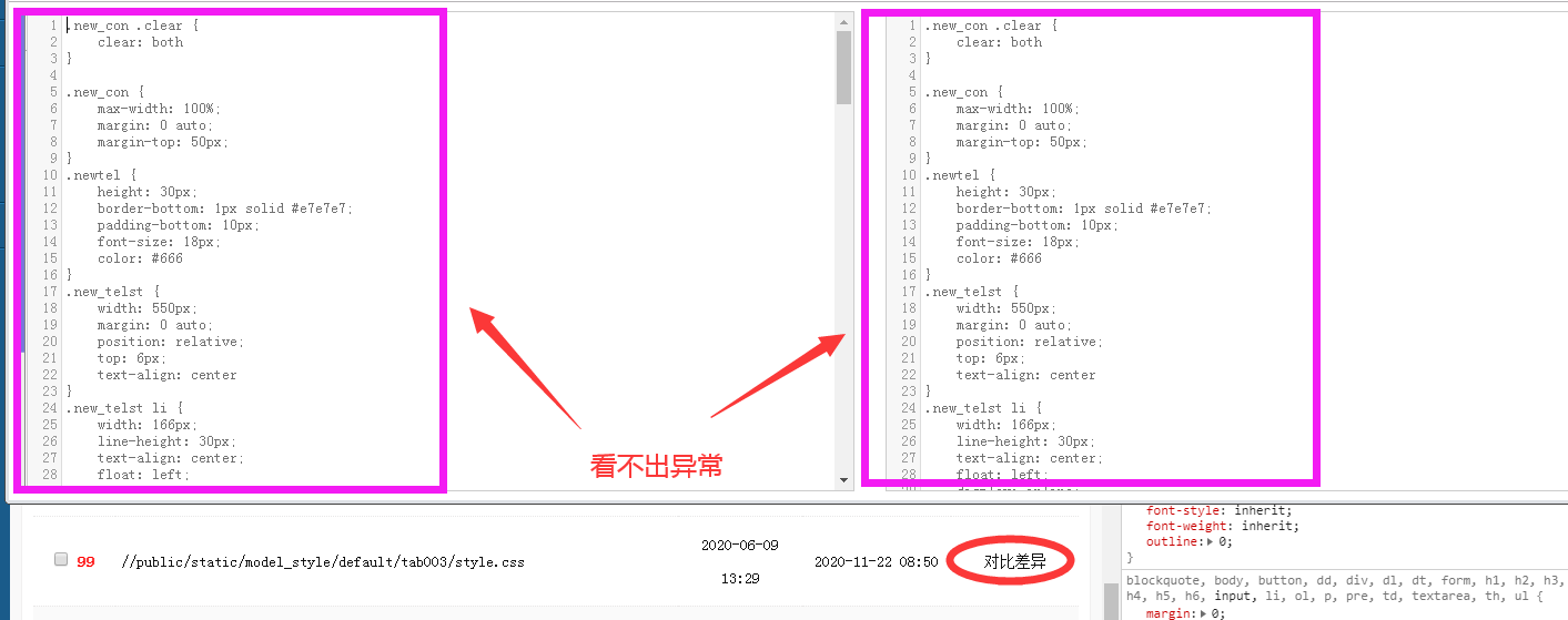 如下图所示,大家在升级时候,可能会发现部分文件,查看差异却看不出有任何变化。