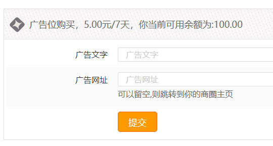 在圈子里有一个广告投放功能,但是实际应用中,相信很多站长根本不用它,因为太鸡肋了,只有简单的文字和链接功能,而且可应用的场景实在太有限,而且吸引力更小得可怜。
