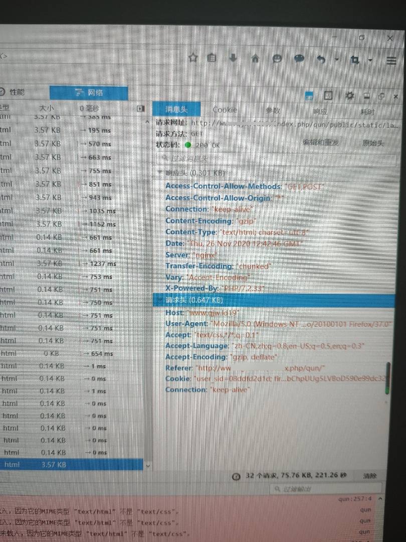 具体是首页后台没有问题,但是qun,fenlei,vote,这些访问加载不了js,css,
