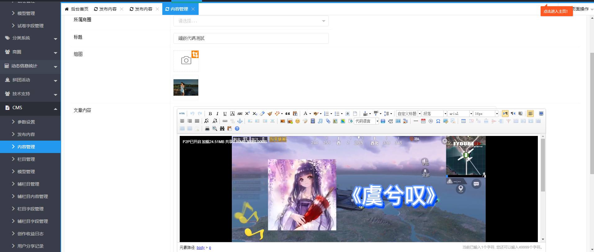 以上代碼可以直接在CMS文章裡面插入
