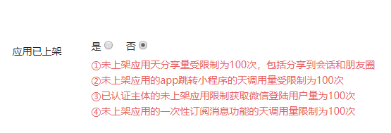 刚刚重新申请的新的微信开放平台认证审核通过,准备申请移动应用绑定时,发觉未上架应用每天只能分享100次,这得怎么玩呢?