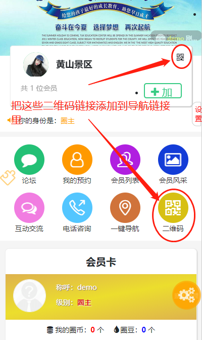 在圈子首页添加导航链接时,二维码是个很重要的元素,但是链接里没有二维码可选,能把它添加进来吗?这样圈主装修时,才能轻松把二维码添加到导航图标中去。