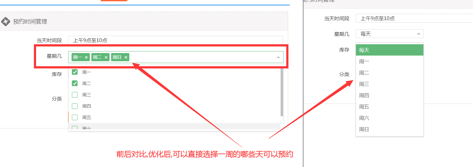 如图所示,现在优化成类似手机闹钟那样设置。直接选择一周中的哪些天。