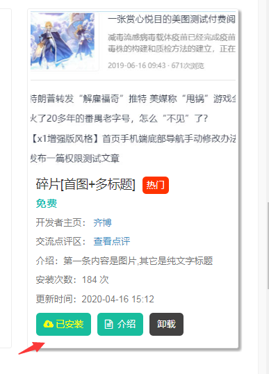 小白提问,应用市场安装碎片后,首页进入编辑无此碎片!