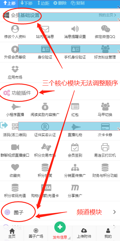 会员中心已经实现了碎片化,但是基础功能、插件、模块,这三个核心部分不是粘连在一起,无法调整上下显示顺序,能把这三大块再碎片化一些吗?这样就可以根据不同网站需求来自由安排显示顺序了。