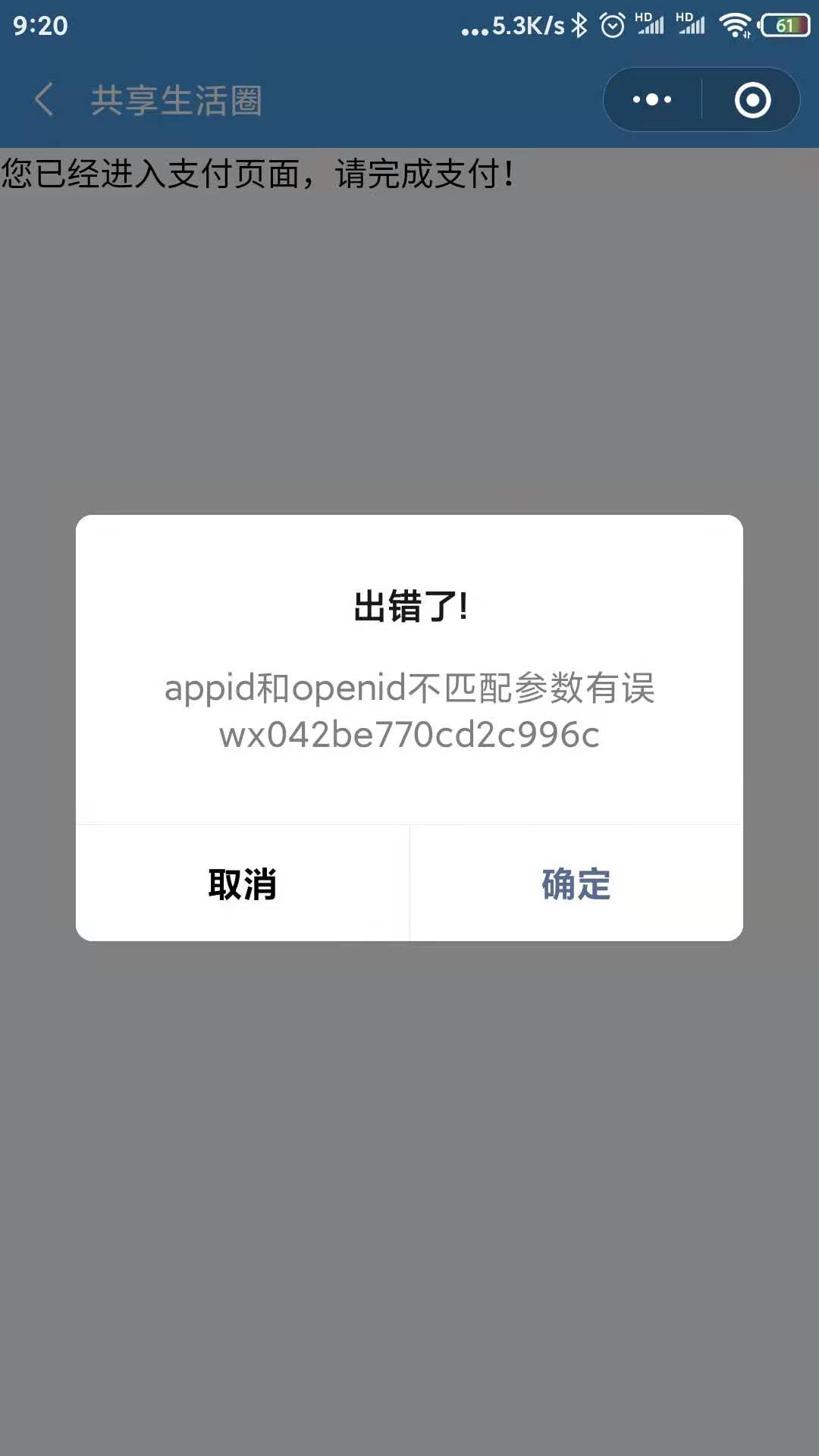 更换开放号后,无法支付了,提示APPID和OPENID不匹配