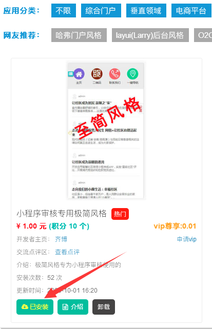 小程序审核专用极简风格安装成功但是却不显示,如图