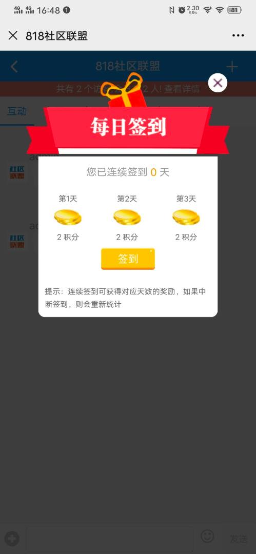 那个弹窗签到点了没反映还不如不要弹窗,会员从菜单那里签就可以了,