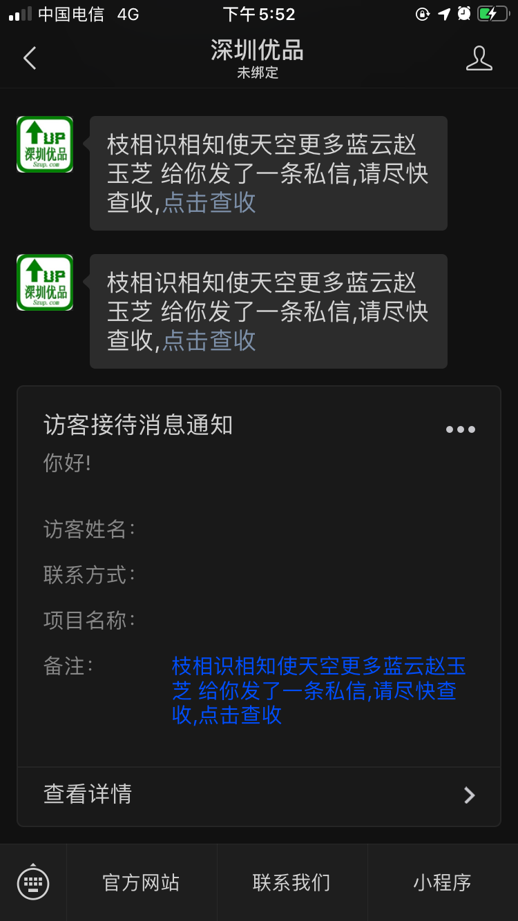 上面的是聊天消息,最后一条是模版消息。