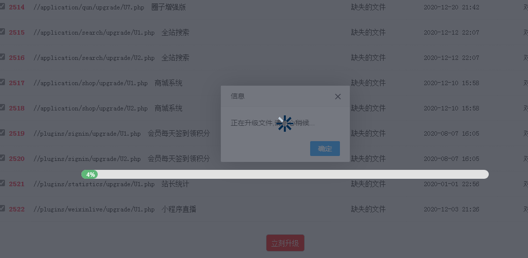 新安装好的,数据库一导入,他就2500多个文件需要更新