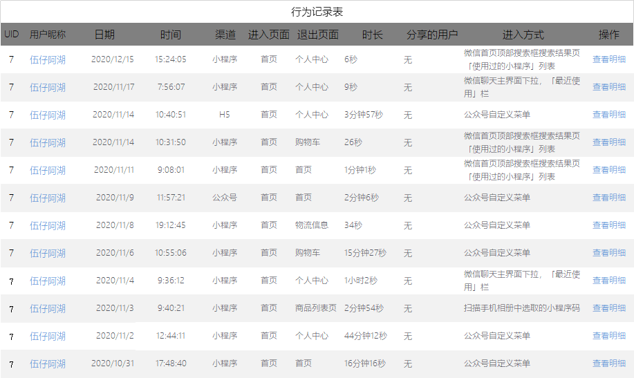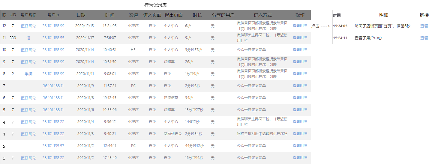 就是比如,以IP为单位,或者登陆后的会员为单位,记录其访问了什么站内链接,做了什么事情(复制什么转发什么等等)的插件,然后又在某个页面离开了本站