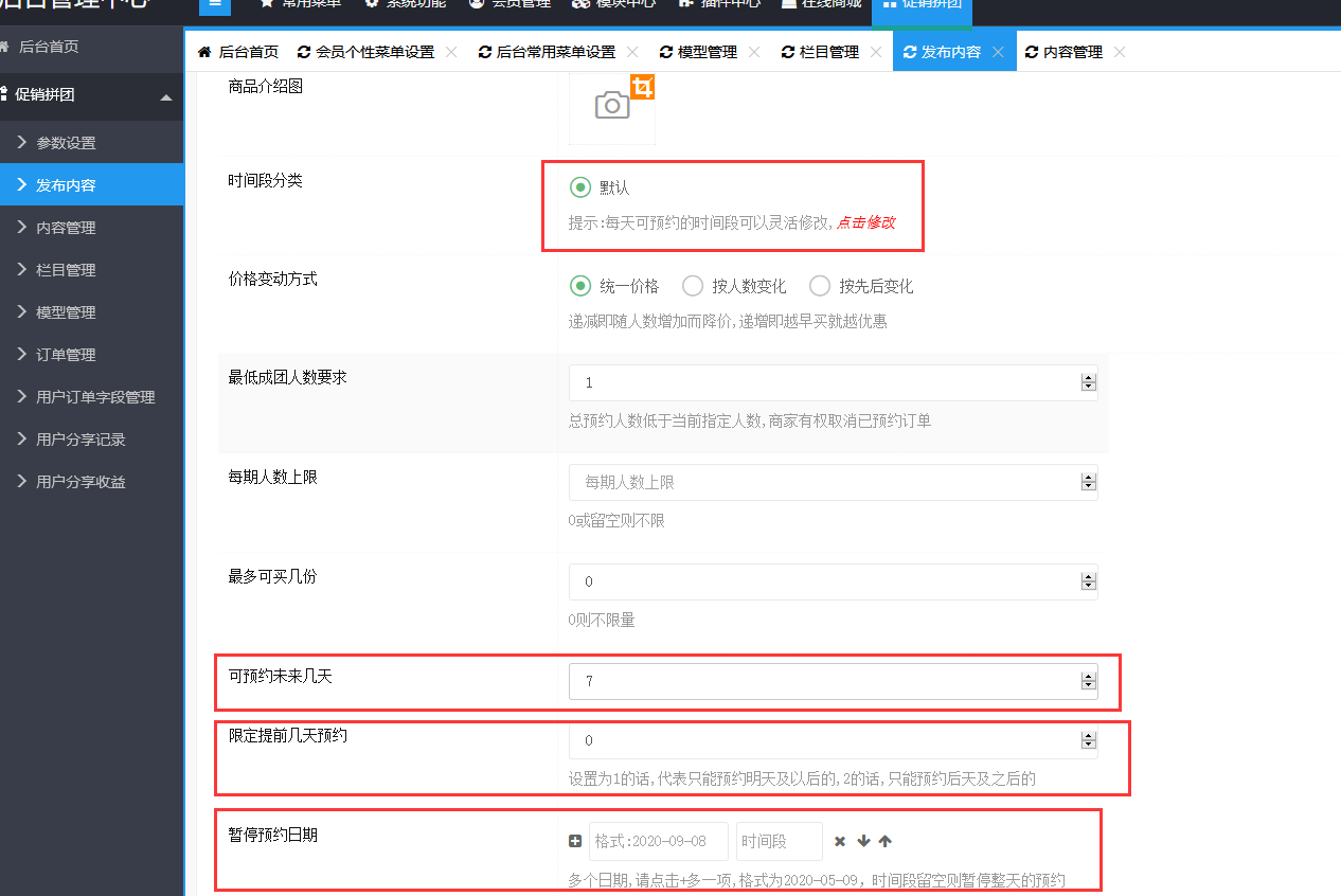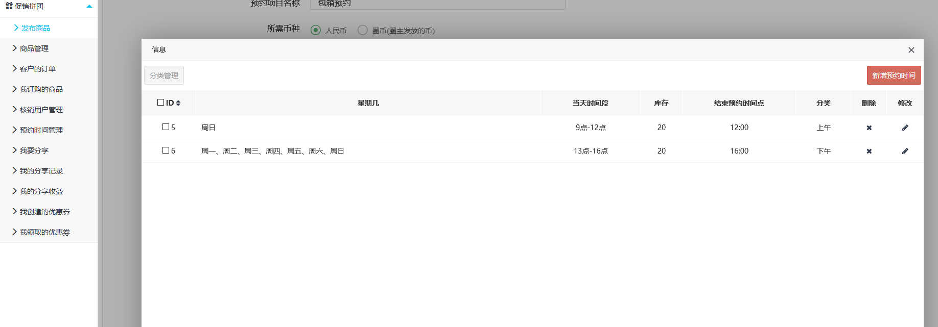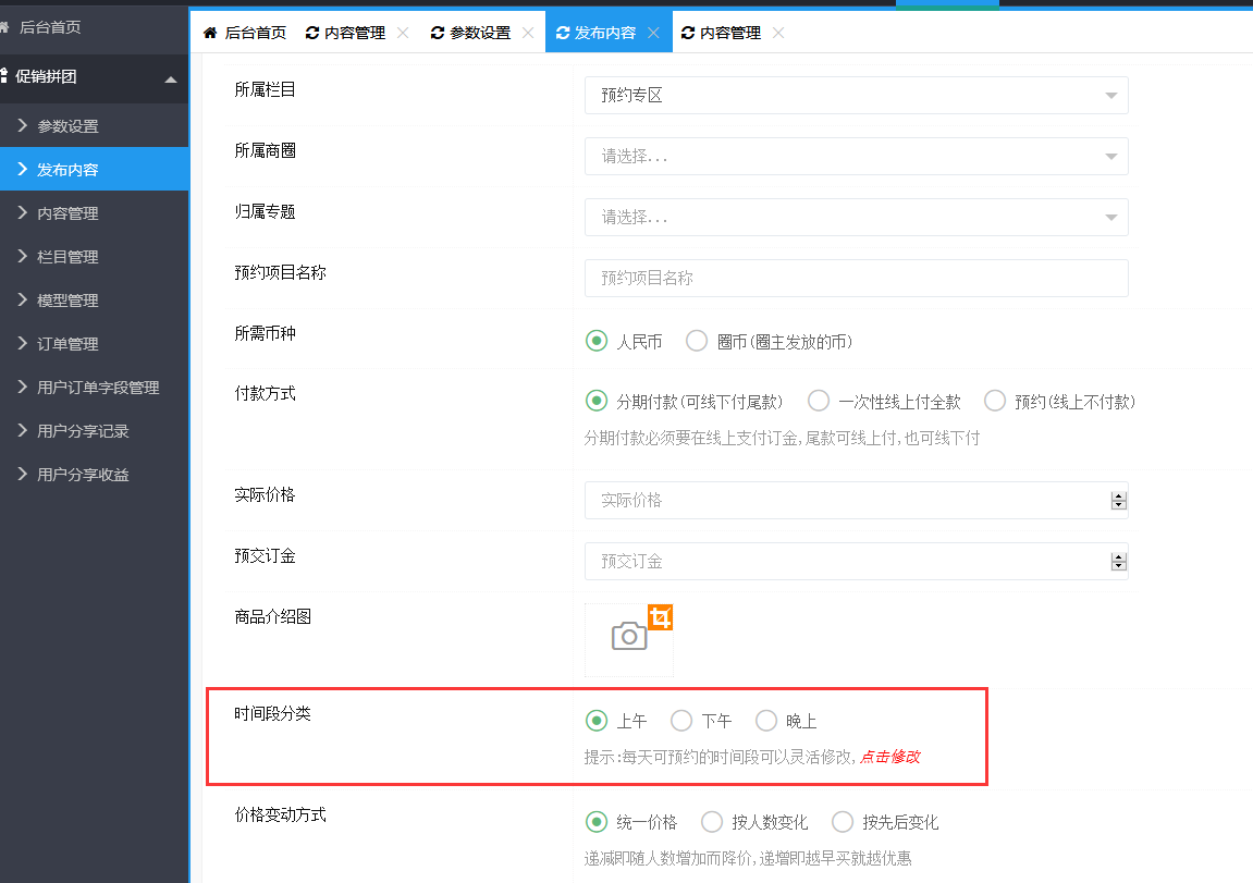 请教各位促销商城里,预约专区的时间段分类 设置了好像没效果,是怎么设置的?