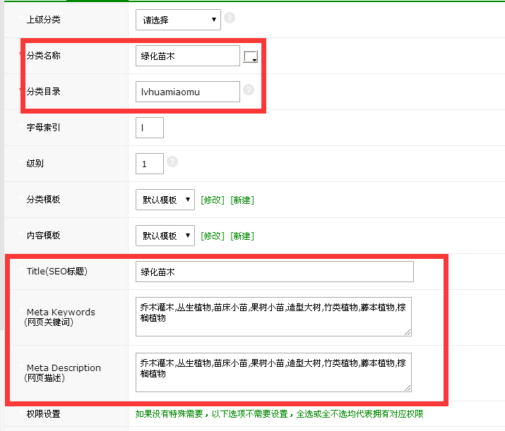建议分类修改里对分类进行增加 分类seo标题seo关键词 seo描述
